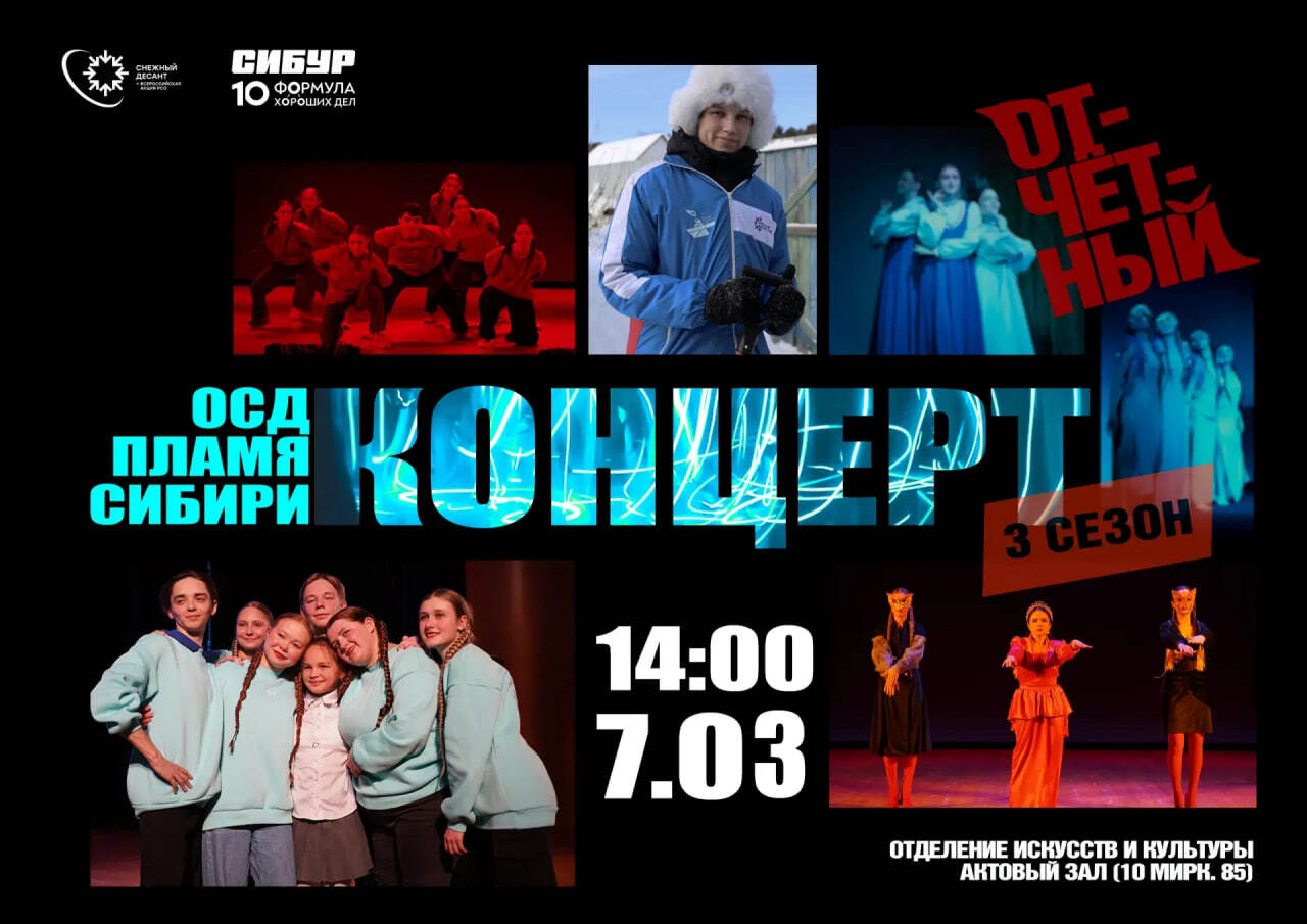 7 марта в 14:00 в отделении искусств и культуры состоится финальный концерт «Снежного десанта»! Это событие, которое вы не хотите пропустить. В этом сезоне ребята подготовили невероятные номера, и мы узнаем, кто станет лучшим бойцом и получит титул самой яркой звезды.