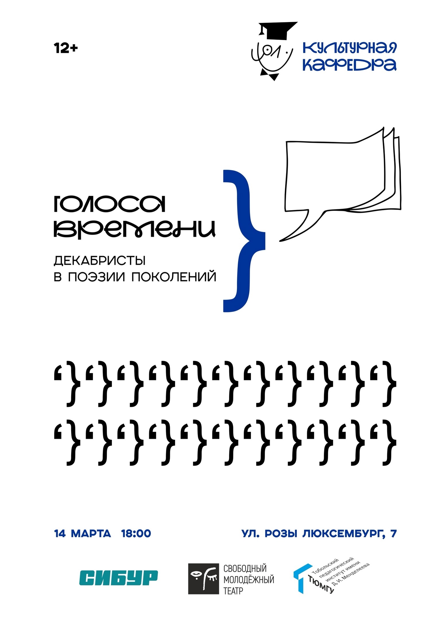 В пятницу, 14 марта, писатель-краевед, член-корреспондент Петровской академии наук и искусств Татьяна Солодова выступит с лекцией «Голоса Времени. Декабристы в поэзии поколений». Мероприятие пройдет в Свободном молодежном театре по адресу: г. Тобольск, ул. Розы Люксембург, 7 (здание мужской гимназии).